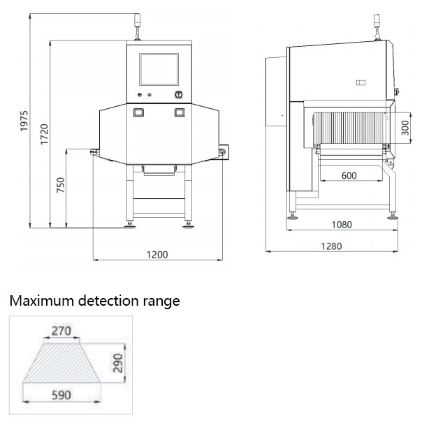 Remarks: The foreign body size of the detectable object is related to the material composition, packaging material, thickness and other parameters in the product. In the actual production environment, please refer to the actual product test results.