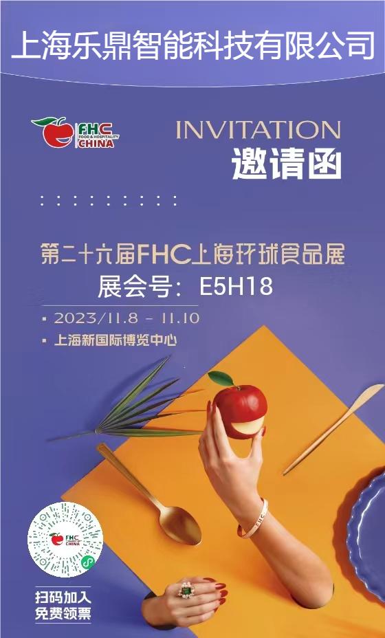 上海樂(lè)鼎智能科技有限公司于11.8-11.10日在上海新國(guó)際博覽中心參加第二十六屆FHC上海環(huán)球食品展,展位號(hào):E5H18, 歡迎新老客戶(hù)過(guò)來(lái)現(xiàn)場(chǎng)參觀和指導(dǎo)!